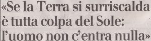 Poco male se la festa, magari, sarebbe un po’ rovinata dal dispiacere di tanti studiosi del clima di aver sprecato tanti anni della propria vita, o dall’aver fatto la figura dei polli; si potrebbe sempre dire di averlo fatto in buona fede. E in fondo l’amor proprio sarebbe ben poca cosa rispetto ai benefici, per l’umanità, del non dover fronteggiare il problema del riscaldamento globale.