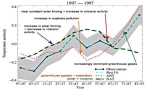 “all of the PROJECTED 3.6 deg C (or whatever) increase is from HUMAN-RELATED forcings (since we CANNOT PREDICT changes in solar or volcanic activity in the future”