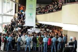 Altra questione, l’Unione Europea. Passata come paladina del clima in molti media mainstream, la Hedegaard sconta un’Unione, paradossalmente, divisa con Polonia e Paesi dell’est fortemente ostili ad accordi vincolanti (ed infatti sul tavolo l’UE ha portato quello che già aveva deciso, il 20% entro il 2020 ed una promessa intangibile su un taglio del 30%) e, ancora peggio sconta politiche commerciali incoerenti con gli obiettivi ambientali, basterebbe guardare aldilà della retorica come stia spingendo la Raw Materials Initiative come approccio commerciale di ricerca attiva delle materie prime o come si stia muovendo all’interno dell’Organizzazione Mondiale del Commercio, sostenendo la questione del cambiamento climatico come “new issue” per spingere avanti l’agenda di liberalizzazioni commerciali.