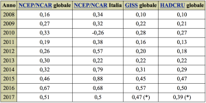 In realtà il 2017 risulta al primo posto anche volendo riferirsi all’anno solare invece che a quello meteorologico:
