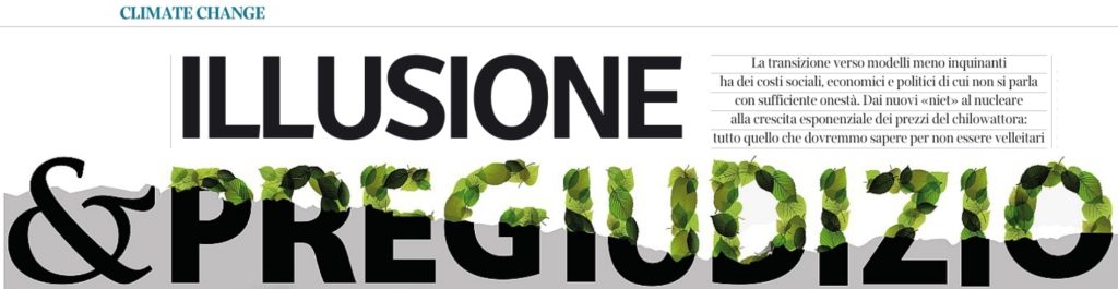 No, che ci (ri)beccheremo nei prossimi anni una alluvione di chiacchiere sulla finta soluzione del nucleare modulare, di 4° generazione, al torio, autofertilizzante, con scappellamento a destra, “che risparmia il paesaggio”, e intanto continueremo per decenni a inzeppare l’atmosfera di CO2 fossile, fino a che i giacimenti in mano alle “sorelle” non saranno stati svuotati.