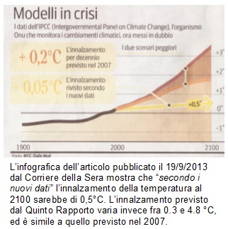 L’articolo pubblicato sul Corriere 8 giorni prima dell’uscita del Quinto rapporto IPCC, basato su “indiscrezioni trapelate” descriveva un’inesistente ridimensionamento del problema ipotizzando una possibile revisione sulle politiche globali riguardanti emissioni...