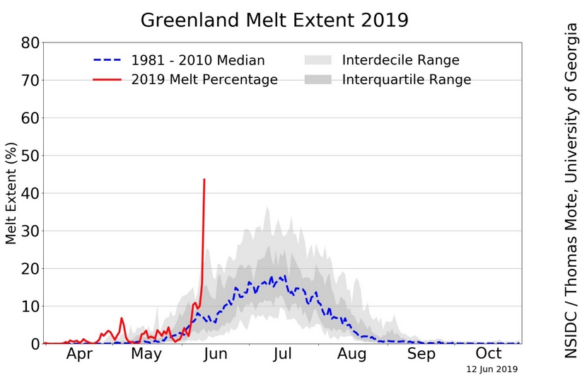L’altro giorno un amico mi ha girato questo grafico sull’andamento della superficie nevosa della calotta di ghiaccio in Groenlandia soggetta a fusione, con la domanda: si sono starati gli strumenti...