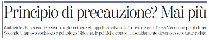 Il titolo della pagina 28 di TuttoScienze apparsa su La Stampa di mercoledì 1 luglio 2009, “Principio di precauzione? Mai più”, desta nel lettore un senso di stupore e induce...